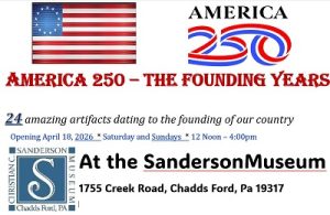This will mark the opening of our Sanderson Museum 250th Collection (The Founding Years). We have hand-picked 24 items that help mark the founding years the United States of America. Stop by and view these items firsthand and experience the nation’s history up close and personal